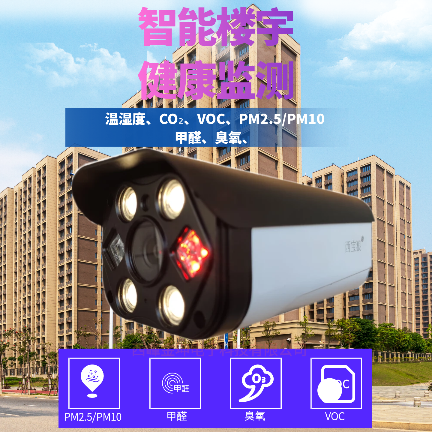 西宝狼传感器温度湿度光照二氧化碳MP2.5臭氧监控摄像头音频对讲